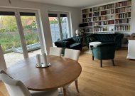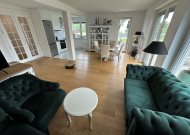 - przestronny, słoneczny i ustawny salon połączony z aneksem kuchennym o powierzchni 36m2 z dwoma wyjściami na dwa tarasy (25m2 i 12m) oraz wyjściem na ogród.