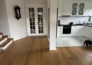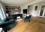 W cenie pozostaje zabudowa kuchenna ze sprzętem AGD, szafy w zabudowie oraz regał biblioteczny w salonie.