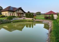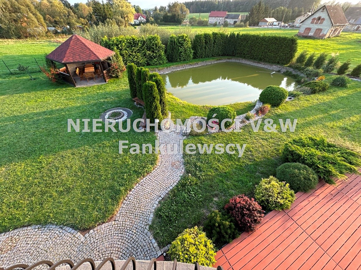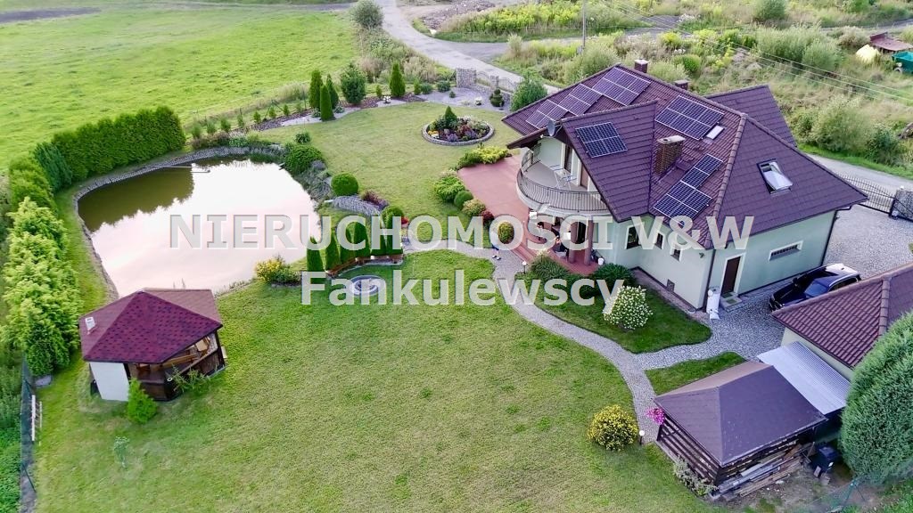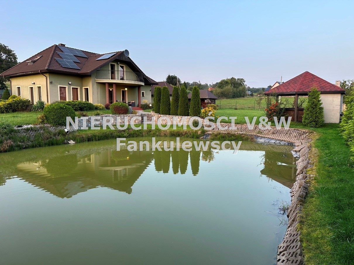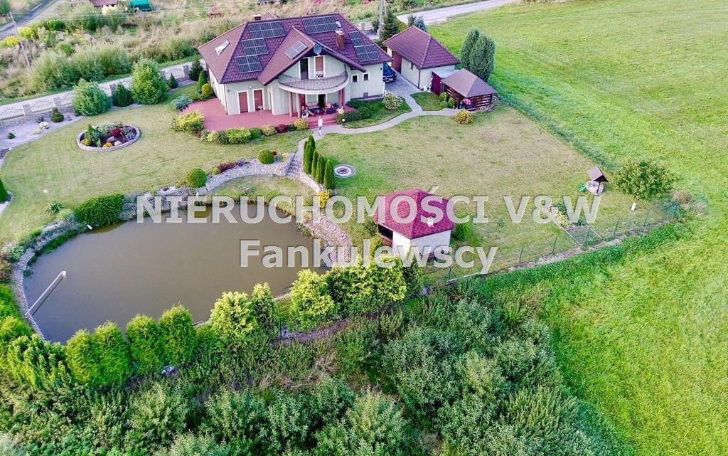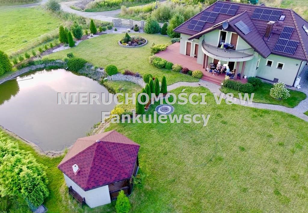 Na terenie posesji znajduje się oczko wodne (zarybione) o powierzchni około 150m2, drewutnia, garaż typu blaszak oraz drewniana altana z murowanym grillem.