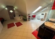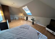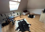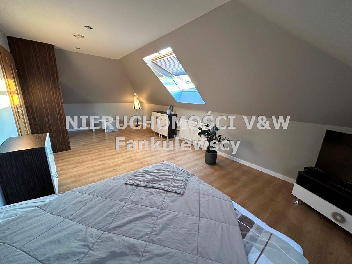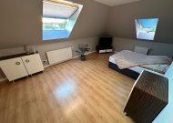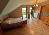 - sypialnia ze skosami i oknami dachowymi, powierzchnia po podłodze około 20m2 z garderobą 3m2 i wyjściem na balkon o powierzchni około 14m2