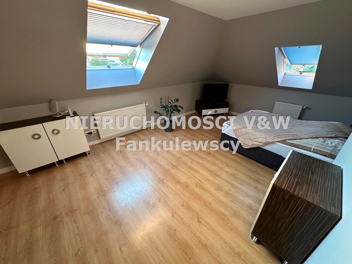 - sypialnia ze skosami i oknami dachowymi, powierzchnia po podłodze około 18,50m2 z garderobą 3m2