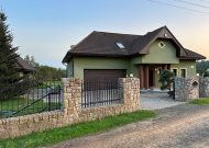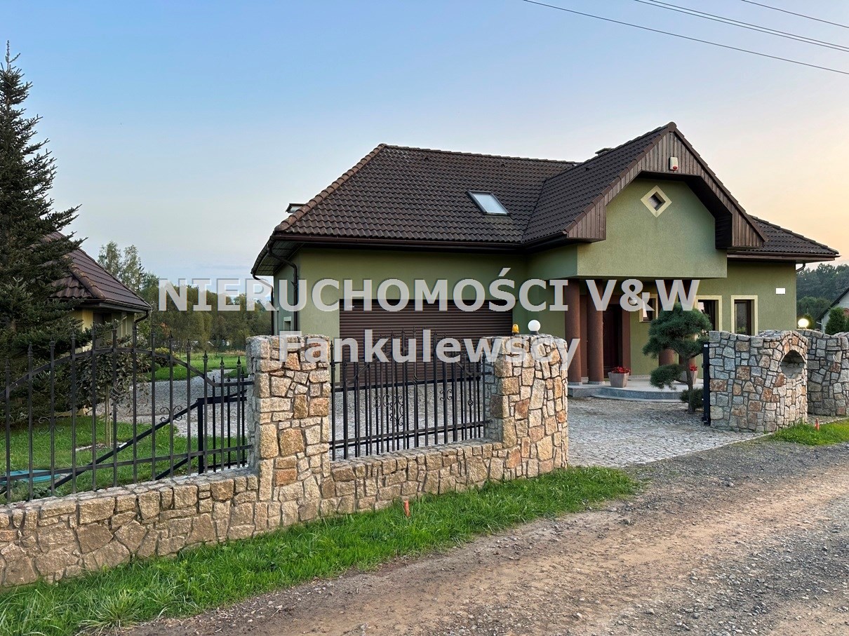 Posesja całkowicie ogrodzona z brama otwieraną na pilota, od frontu podmurówka granitowa z metalowy ogrodzeniem( ocynk malowany proszkowo), na pozostałej części siatka BEKERA. Przed domem teren wyłożony kostką granitową.