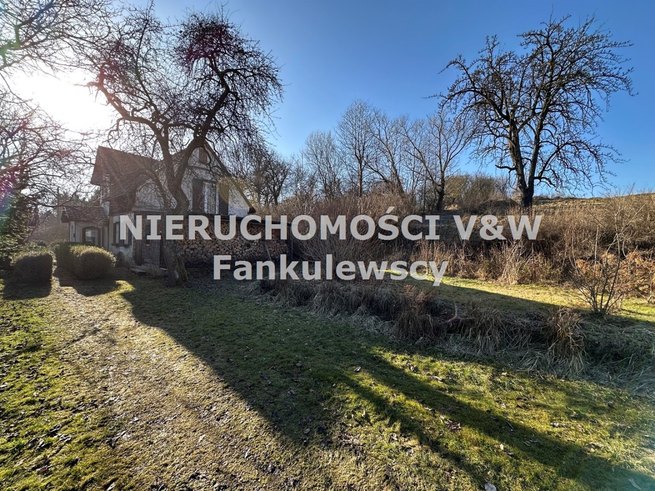 Wokół dużo zieleni, choć w tym okresie jest trochę szaro, dopiero wiosna pokaże w całej okazałości piękno lokalizacji domu.