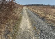 Zjazd z drogi asfaltowej, na drogę bitą, utwardzaną tłuczniem (długość drogi utwardzanej około 300m).