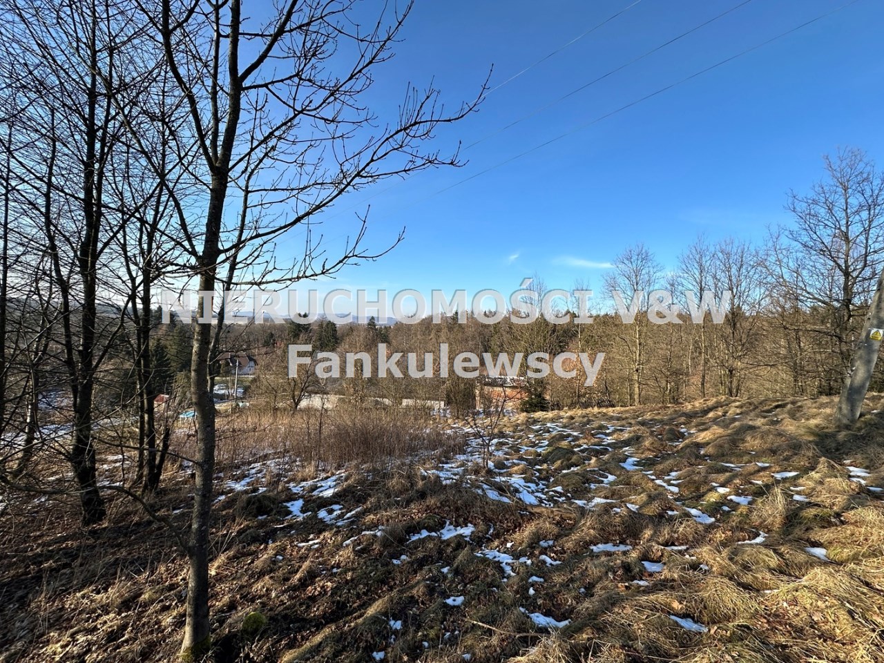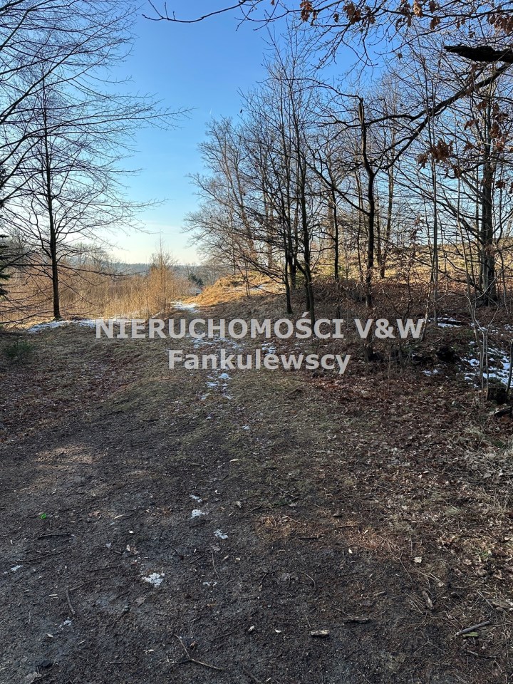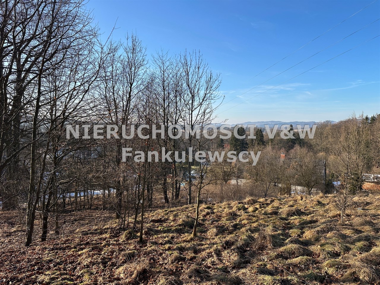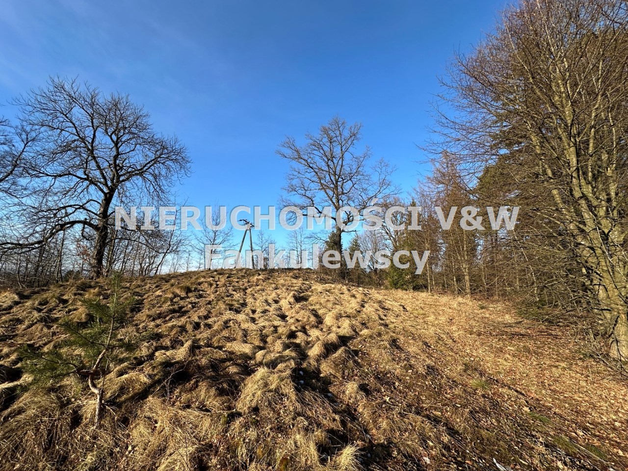 Zaraz przy działce znajduje się las a poniżej działki kilka domów (których nie widać gdy teren się zazieleni.