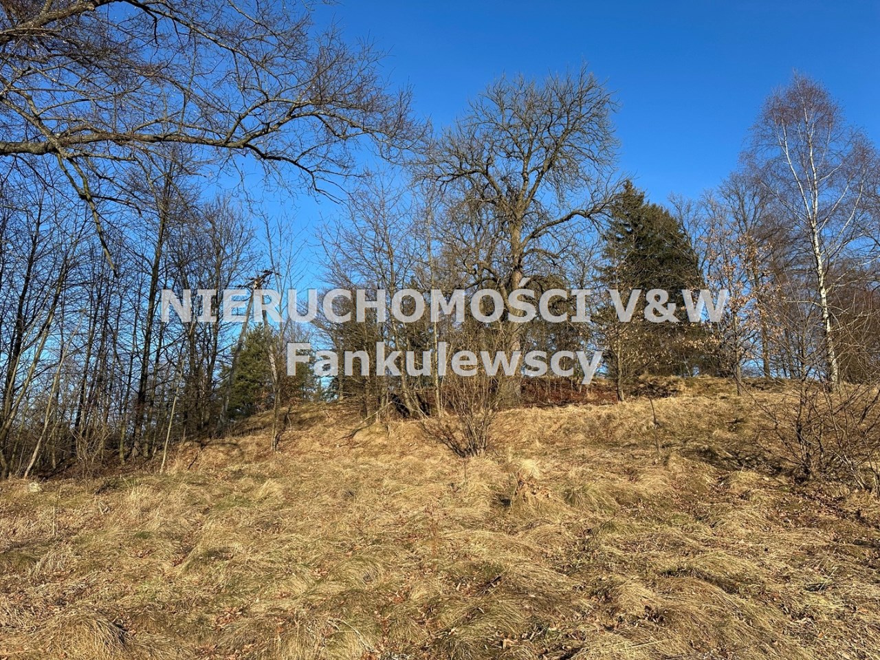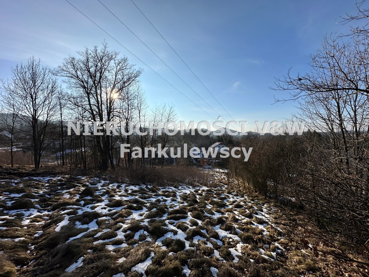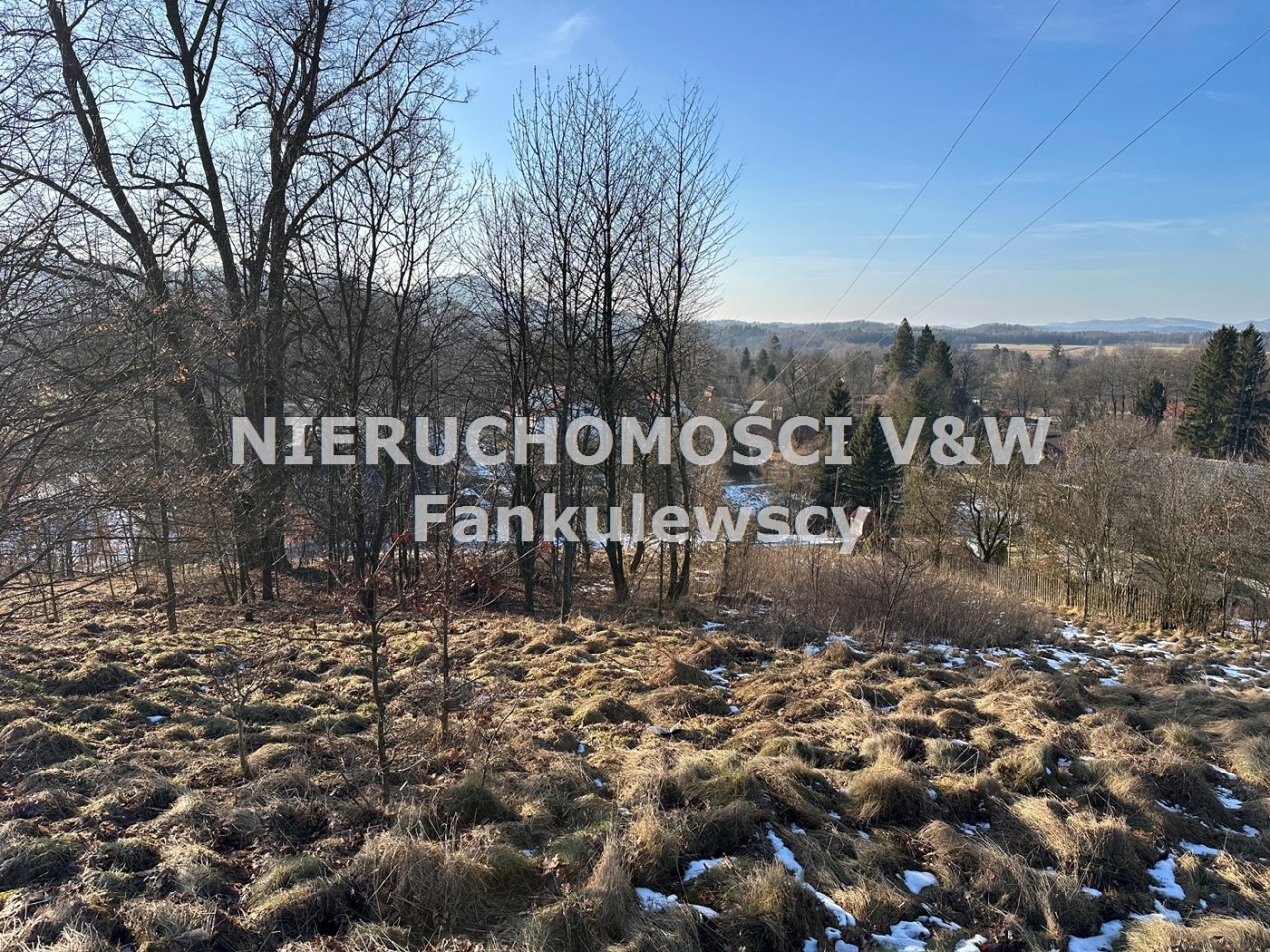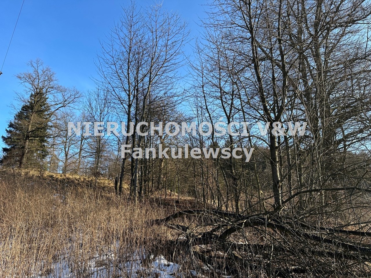 Zaraz przy działce znajduje się las a poniżej działki kilka domów (których nie widać gdy teren się zazieleni.