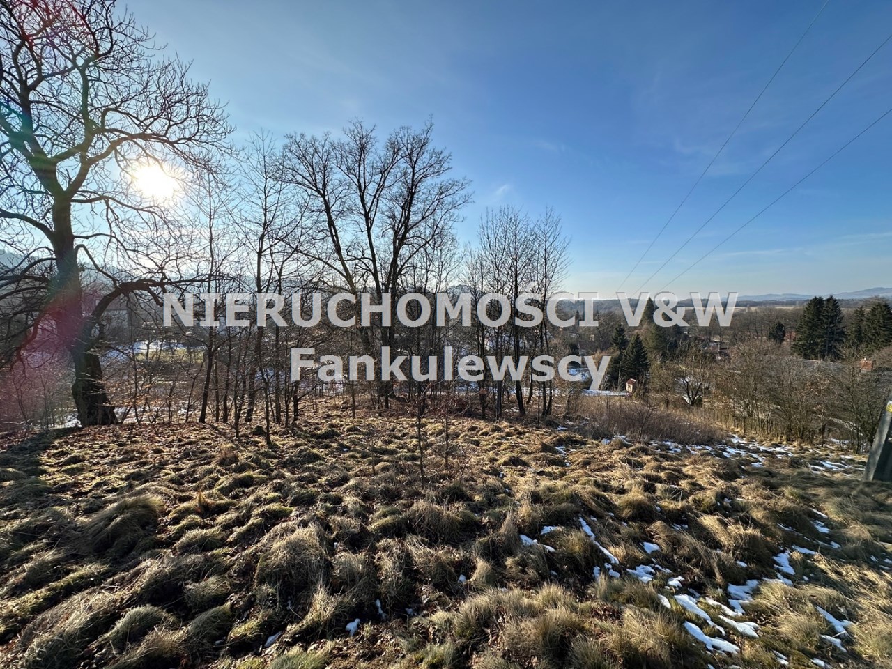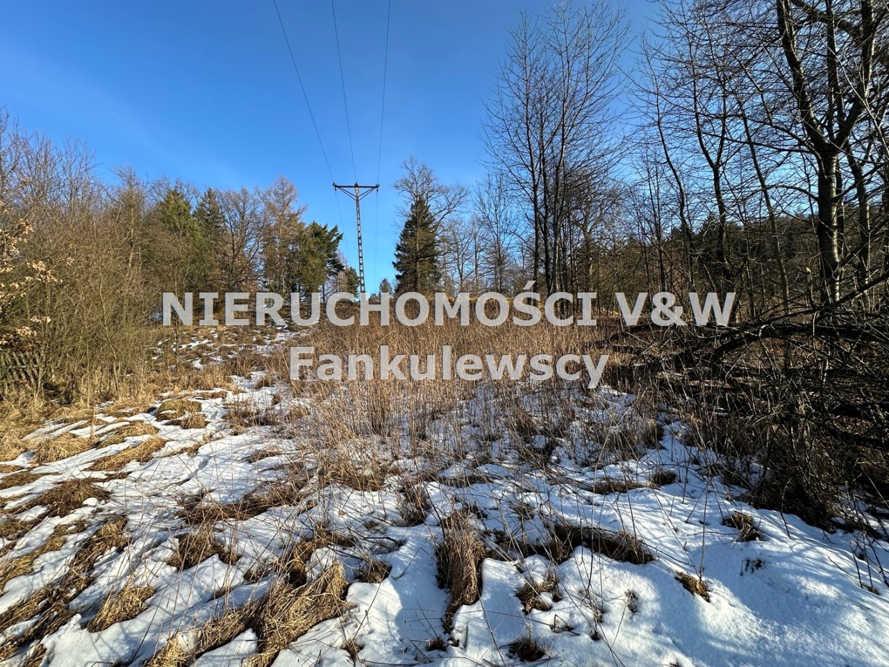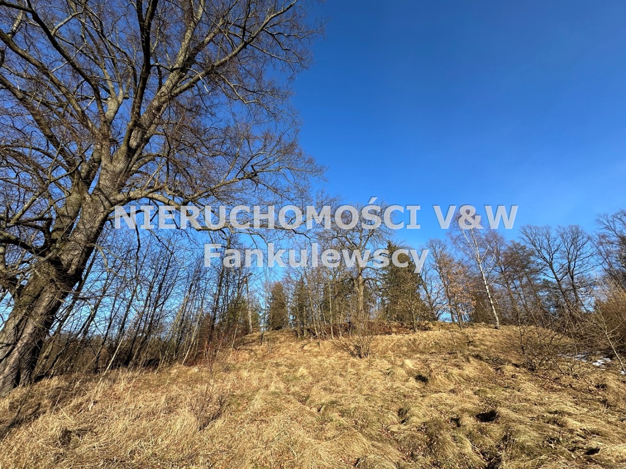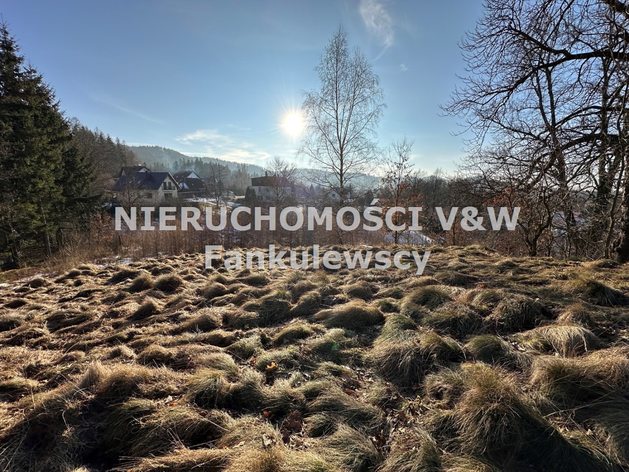 Zaraz przy działce znajduje się las a poniżej działki kilka domów (których nie widać gdy teren się zazieleni.