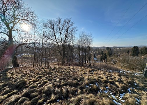 Z terenu działki roztaczają się malownicze, niczym nie zasłonięte widoki na góry, lasy, łąki.